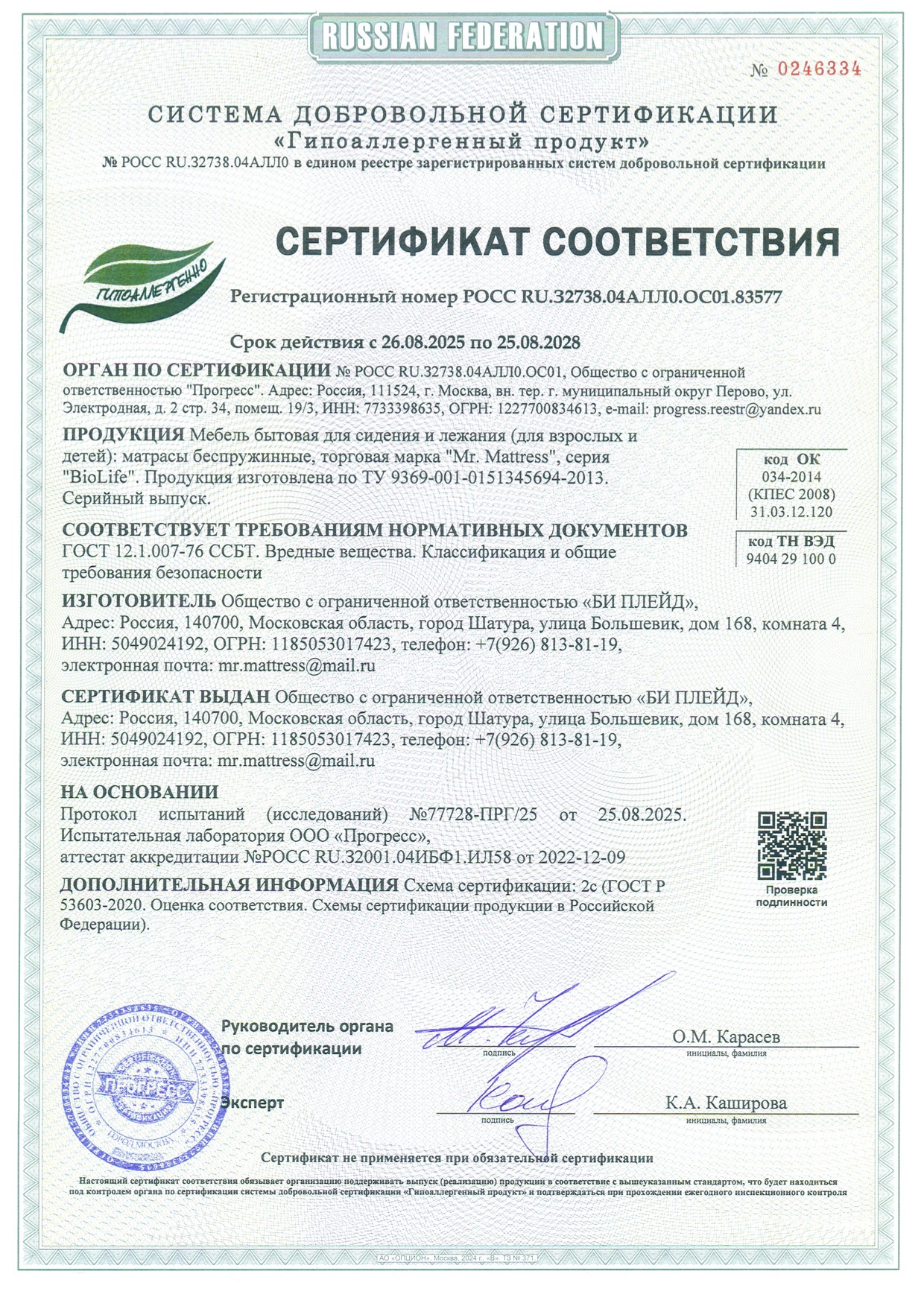 Сертифицированная продукция